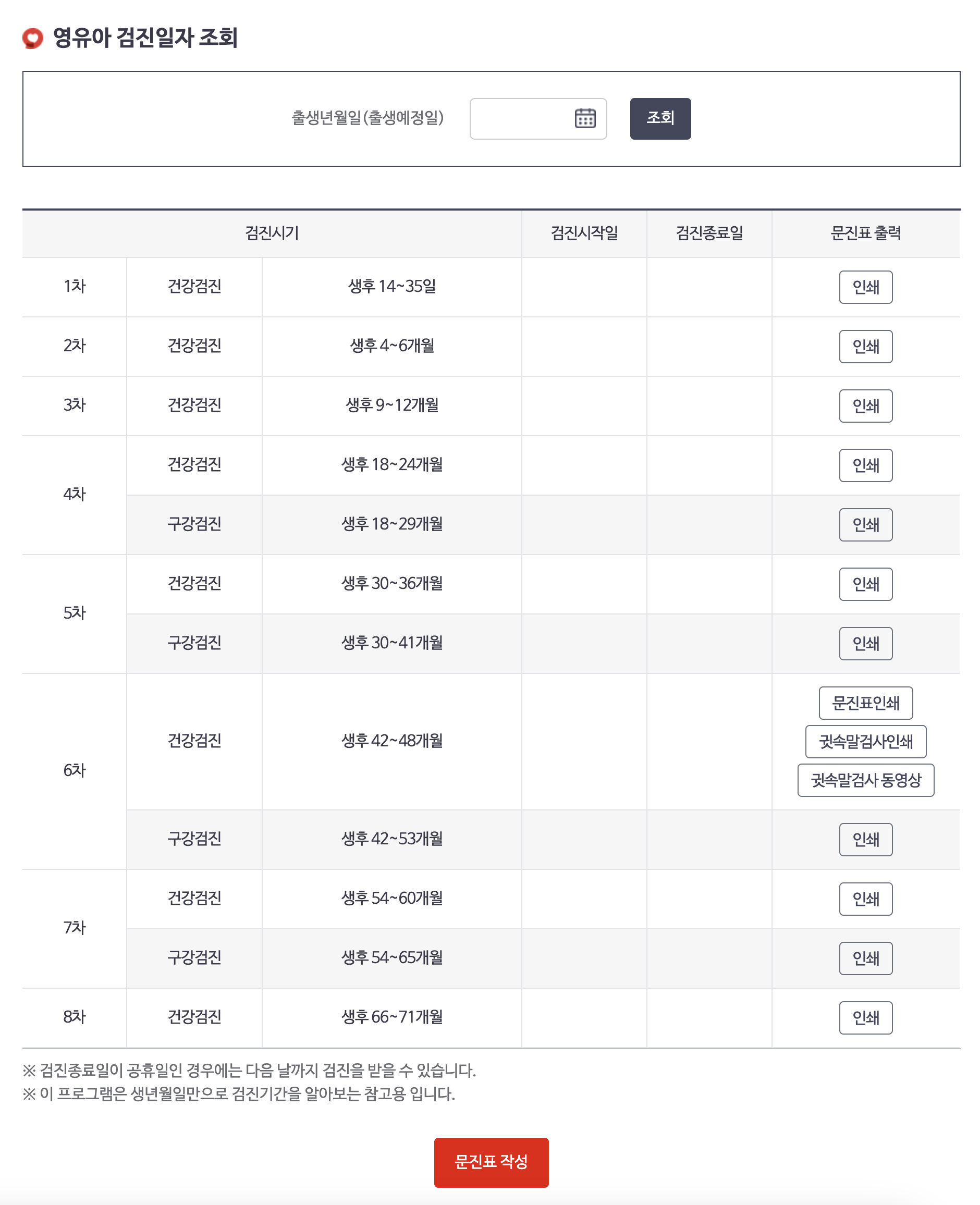 영유아 건강검진 시기 및 문진표 작성, 영유아 건강검진 결과표 출력방법