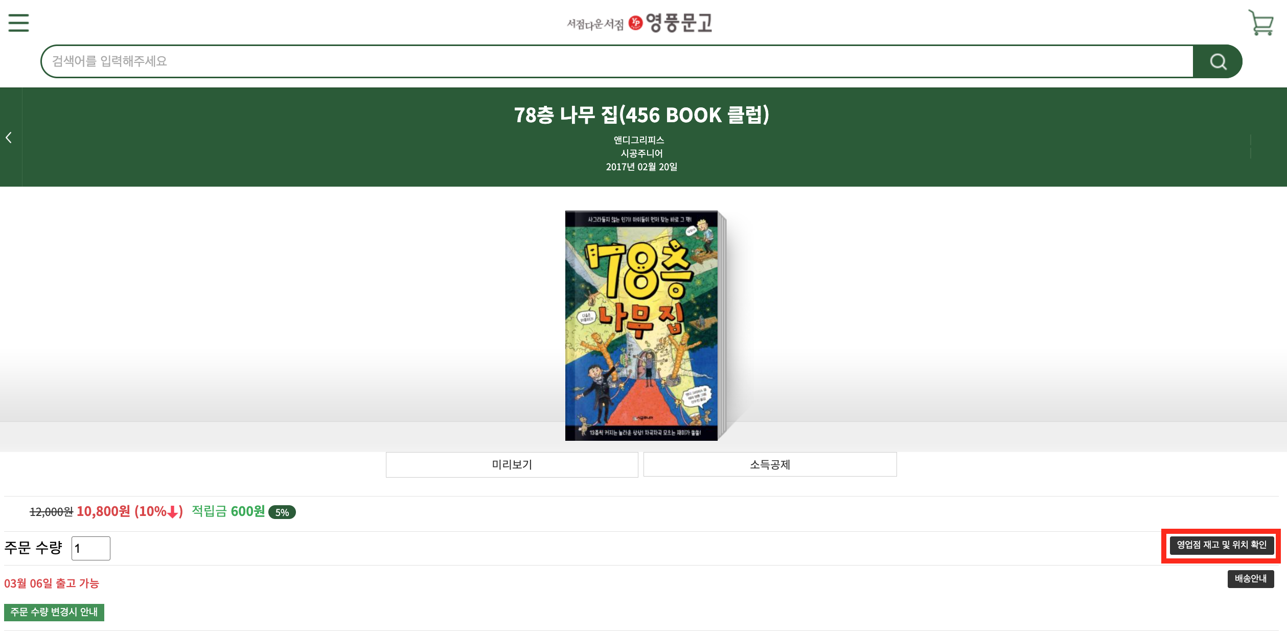 요즘은 PC보다는 모바일로 검색하는 경우가 더 많이 있습니다. 위에서 언급한 바와 같이 해당 내용은 모바일로도 검색이 가능한데요. 위에 안내된 URL을 모바일에서 접속해도 되고, 영풍문고 앱을 이용하여 도서를 검색하신 후, 재고를 확인하실 수도 있습니다.