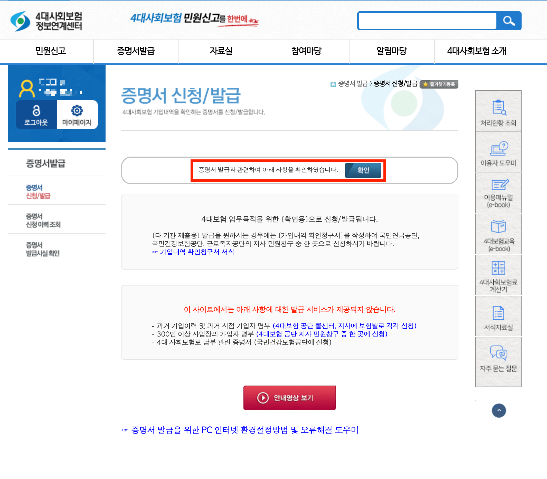 4대 보험 가입증명서 발급