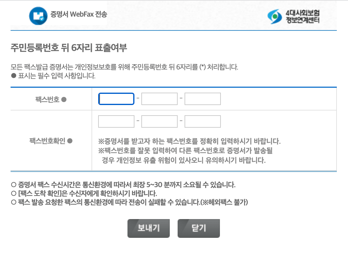 4대 보험 가입증명서 팩스로 보내기